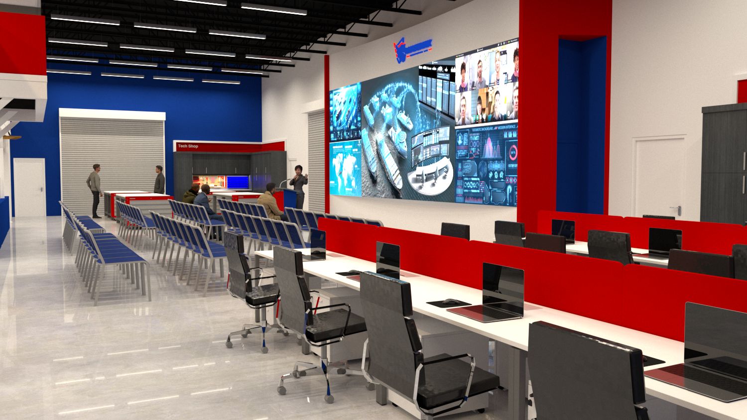 The project began with a massive ambition: transforming an existing facility in Norco, CA, into a ~20,000 sq. ft. hub for government innovation. The challenge wasn’t just physical renovation; it was unification. NAVSEA, NavalX, and the Inland Empire Tech Bridge needed a home that could bridge military and civilian worlds—a space where rank could be set aside for the sake of collaboration. The facility needed to be highly modular to support everything from classroom instruction to expo-style events, all while navigating a complex group of stakeholders.
