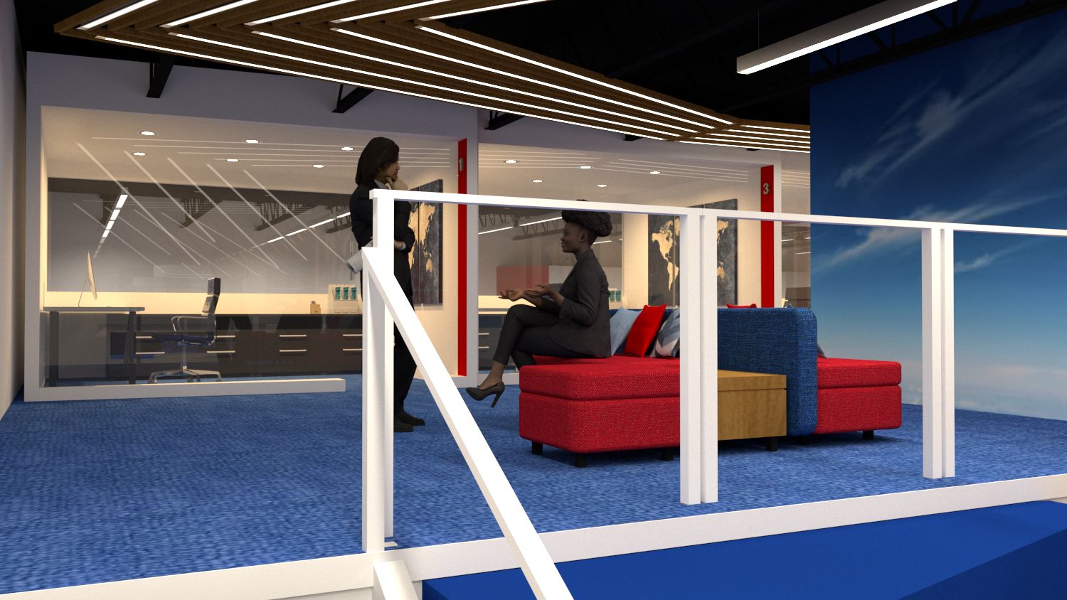 • Specialized Zones: A "fish-tank" conference room for high-visibility strategy and a dedicated video production studio with a sound booth for content creation.