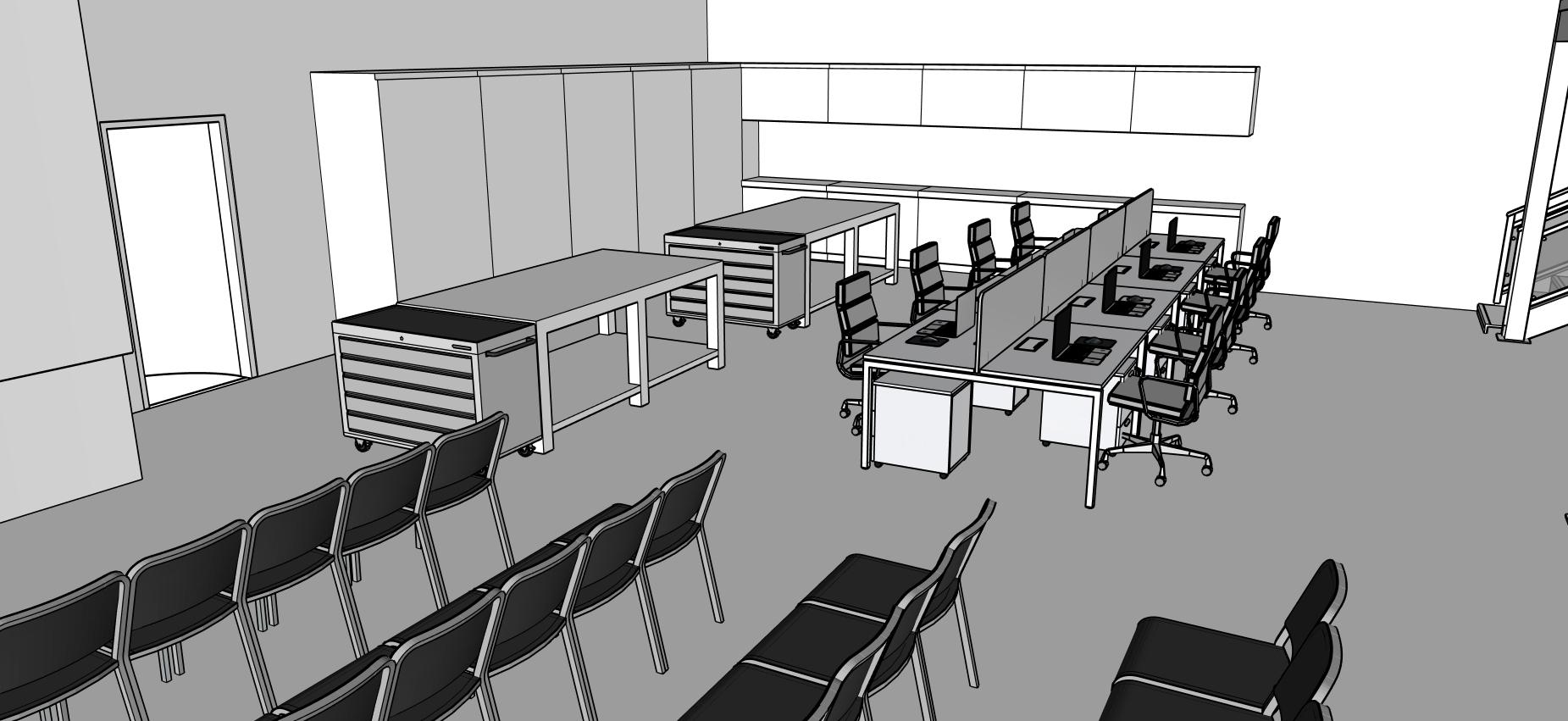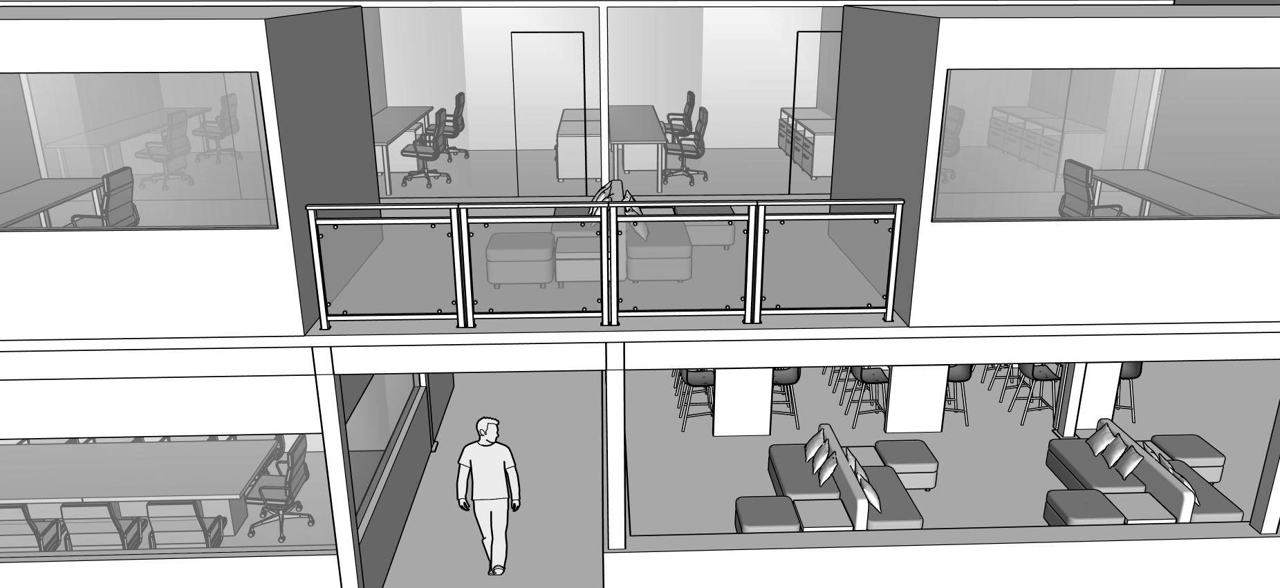 • Spatial Expansion: A new mezzanine level (94' × 30') to house offices and flexible work zones, expanding the facility's usable footprint.